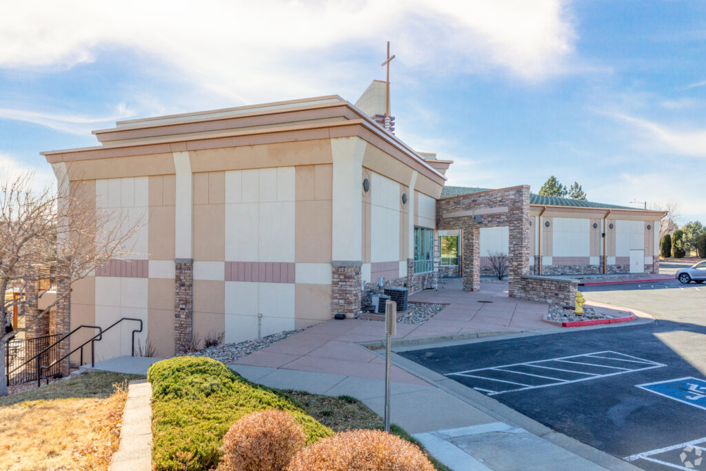 The 5 acre property features a 19,458 SF beautifully built out church and well-manicured grounds. Its proximity to the major commuting arterials of I-25, C-470 and Parker Roads makes this an ideal location for Thrive Church, the new owners of the property. Jubilee Fellowship Church will be leasing back the building from Thrive Church while they make improvements to their new building. Thrive Church plans on taking occupancy in October.